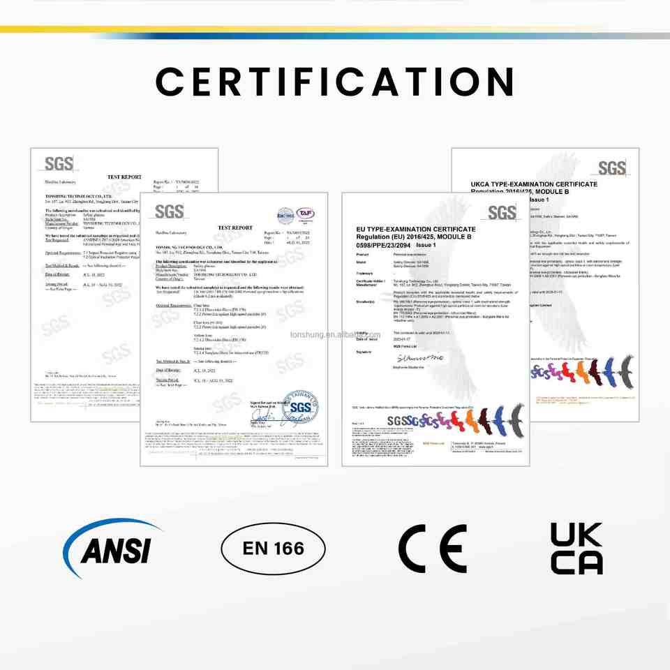 Certifications:ANSI Z87.1; EN 166 (CE; UKCA)