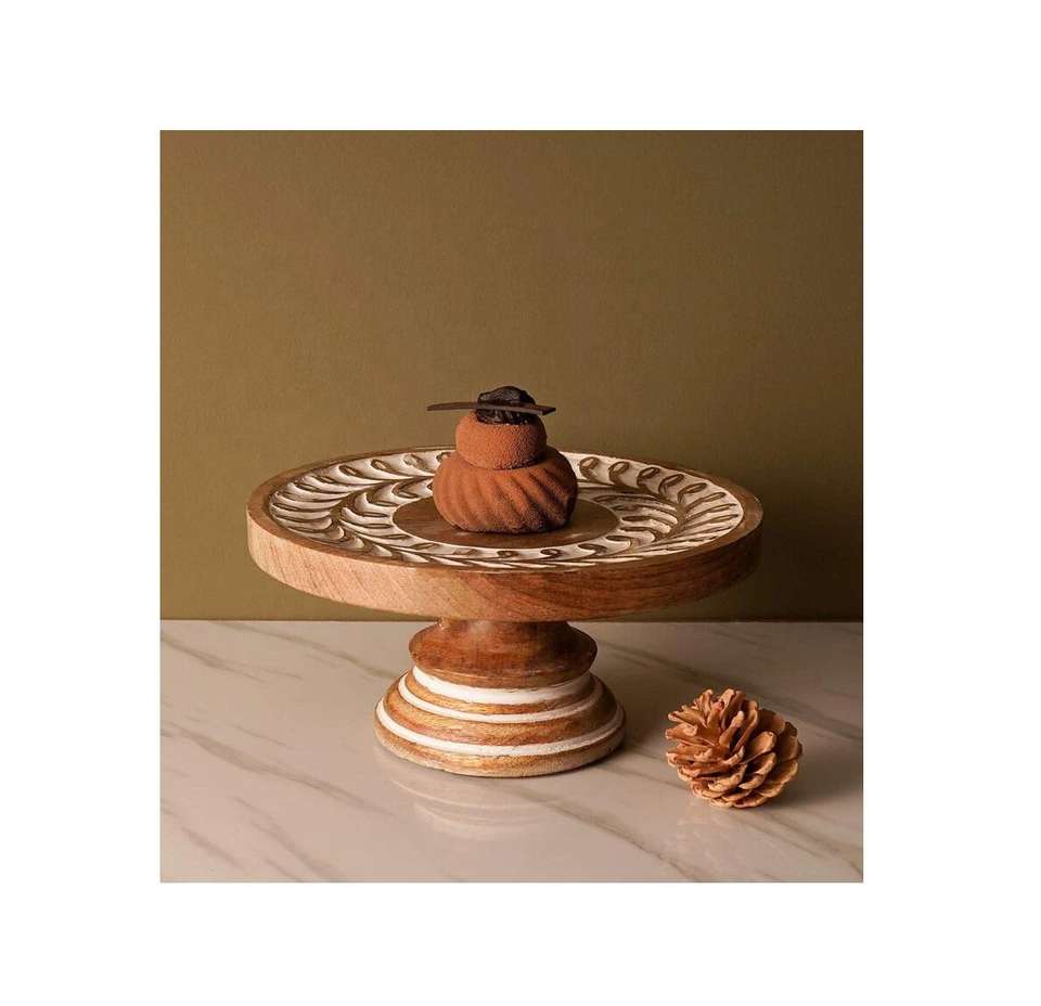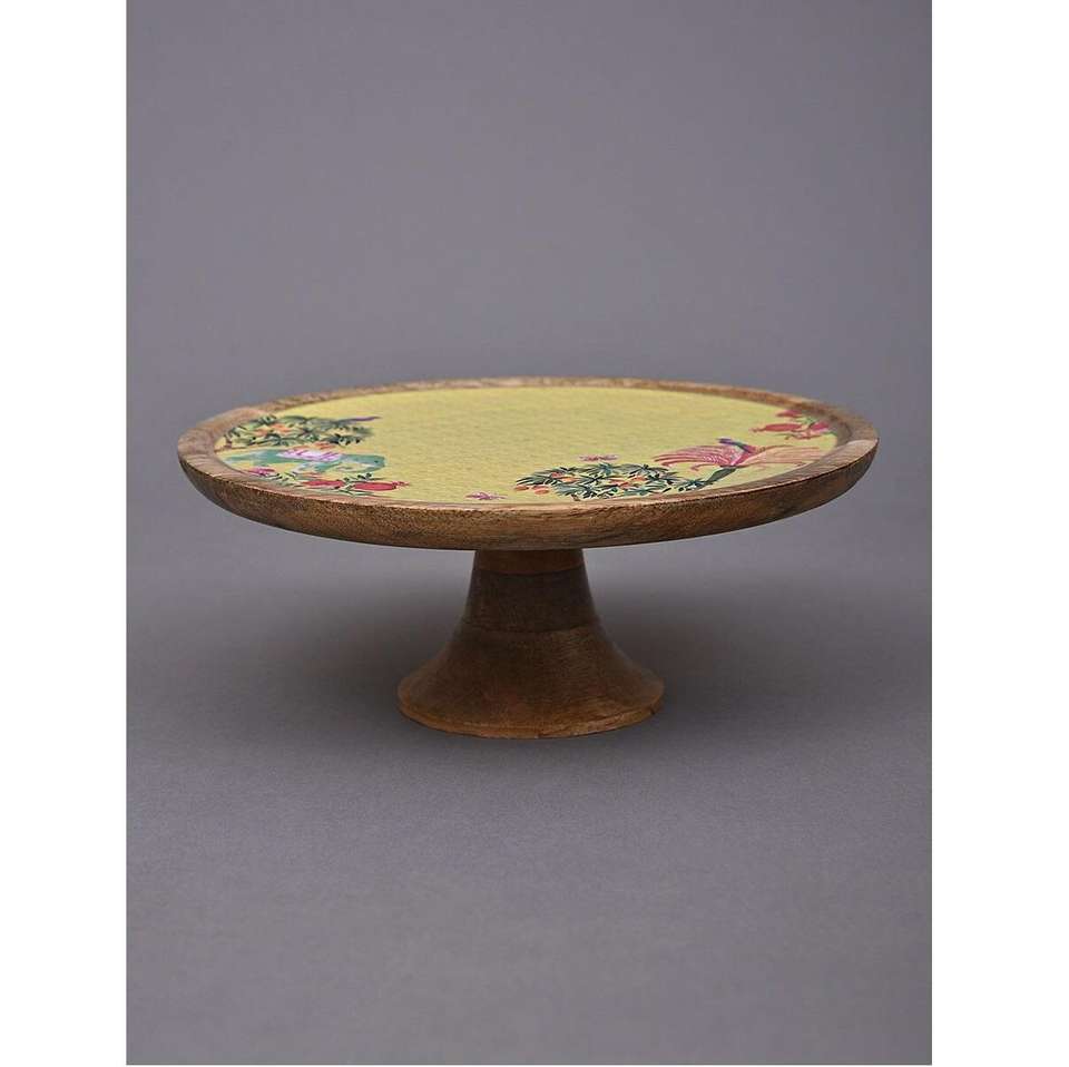 ฐานวางเค้กไม้กระถินณรงค์เคลือบลายพิมพ์พร้อมฝาปิด - ฐานวางเค้กทรงโดม, ฐานวางเค้กทรงกลมขนาด 12 นิ้ว, ชุดจัดแสดงขนมหวานแบบ 2-in-1