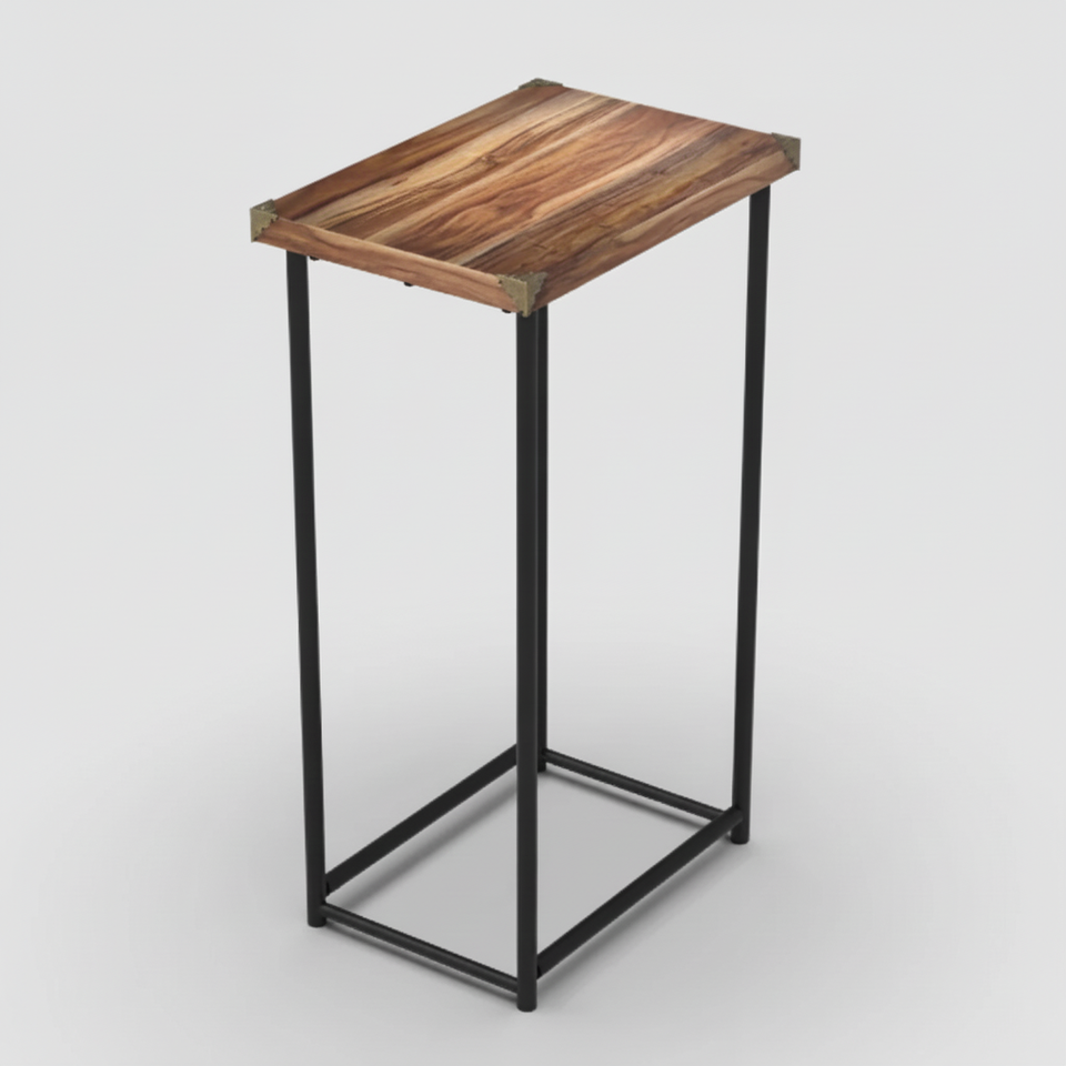 โต๊ะท้ายพร้อมขาโครงเหล็กและท็อปไม้โต๊ะข้างทันสมัยโต๊ะไม้ท้ายโต๊ะเฟอร์นิเจอร์บ้านสำหรับตกแต่งห้องนั่งเล่น