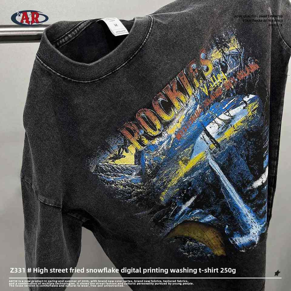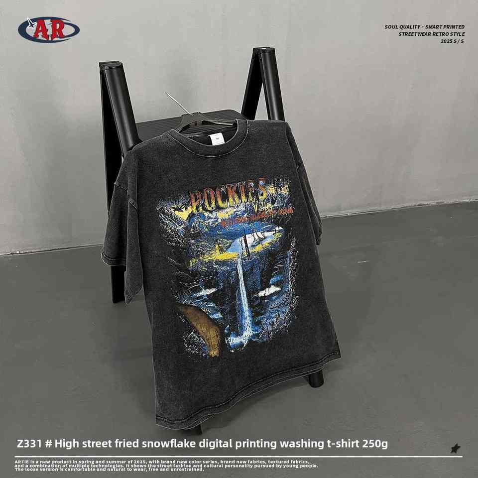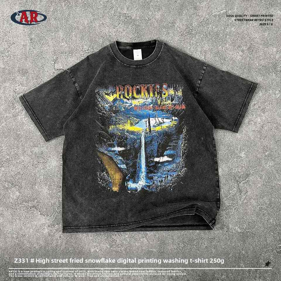 ENDOURABLE SPORTS Summer INS Trendy Men's Solid High Street T-Shirt Silk Screen Printed 100% Cotton Canvas Short Sleeve Regular