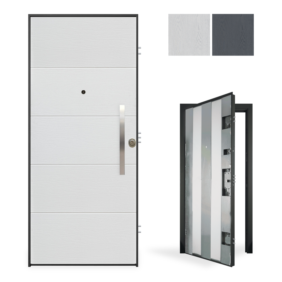 พลังงาน: RC3ประตูรักษาความปลอดภัยพร้อมแผงอลูมิเนียมภายนอกรุ่นเพนต้าดีไซน์เรียบง่ายและทันสมัย