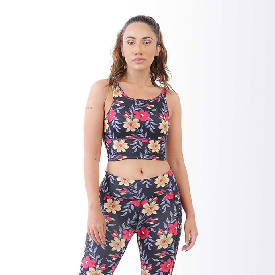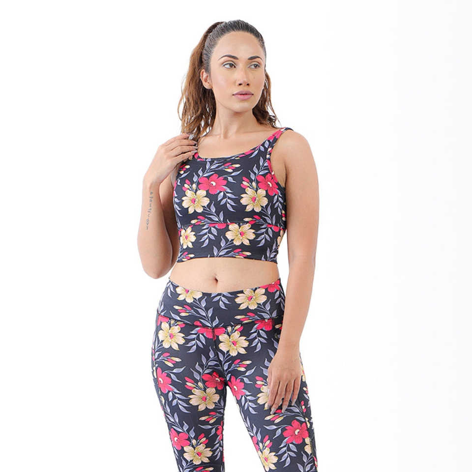 เสื้อชั้นในกีฬาลายดอกไม้ ENHANCE ผลิตจากโพลีเอสเตอร์ 90% และสแปนเด็กซ์ 10%