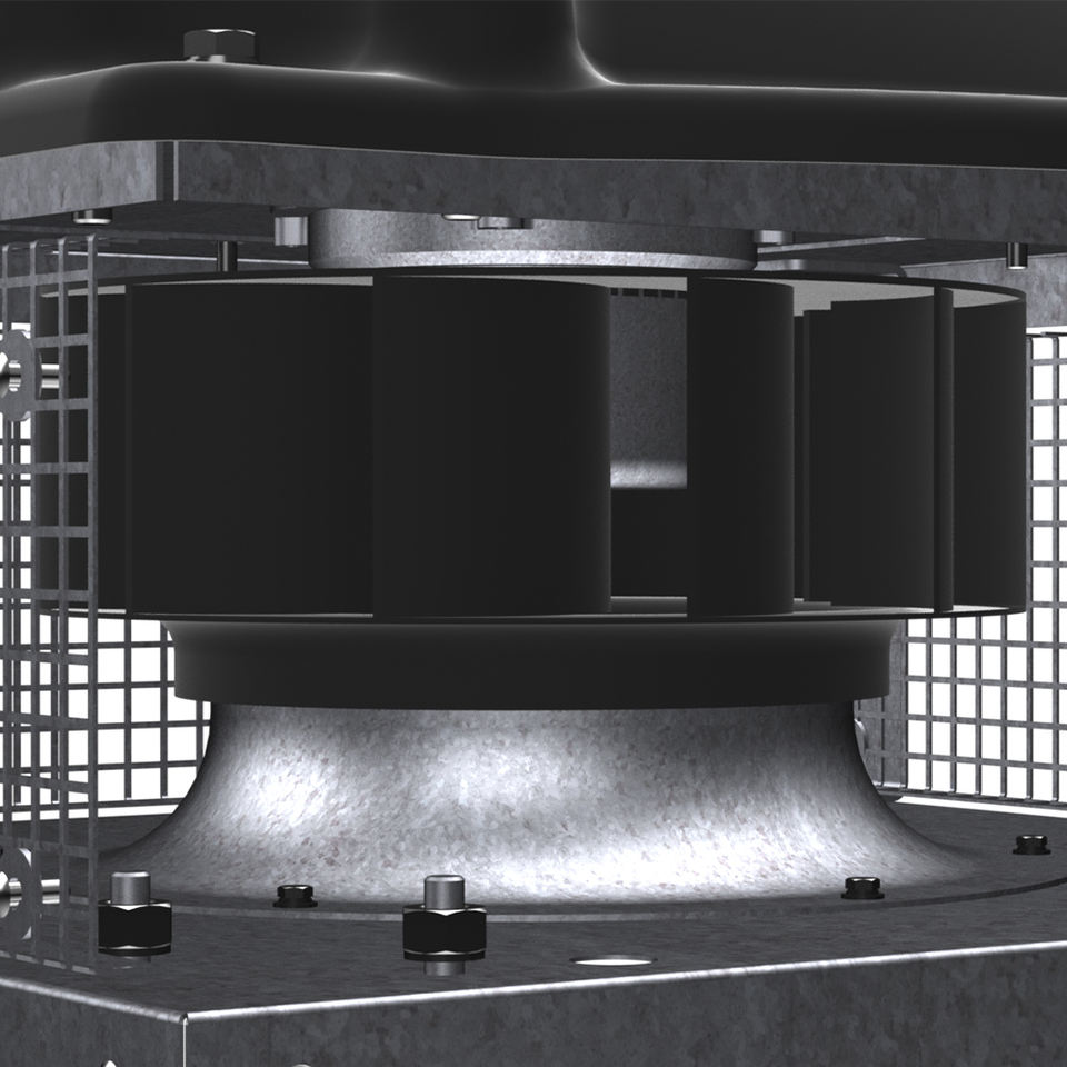 ENKELROOF-A 560 EEC roof fan with removable aluminium cowl, electronic motor; airflow range from 460 to 18600 m³/h