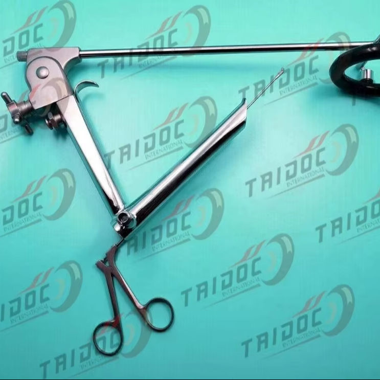 ชุดเครื่องมือผ่าตัดหู คอ จมูก สำหรับการส่องกล้องตรวจภายในลำคอแบบคงที่ด้วยตัวเอง พร้อมใยแก้วนำแสงภายใน ทำจากสแตนเลส ใช้งานด้วยมือ