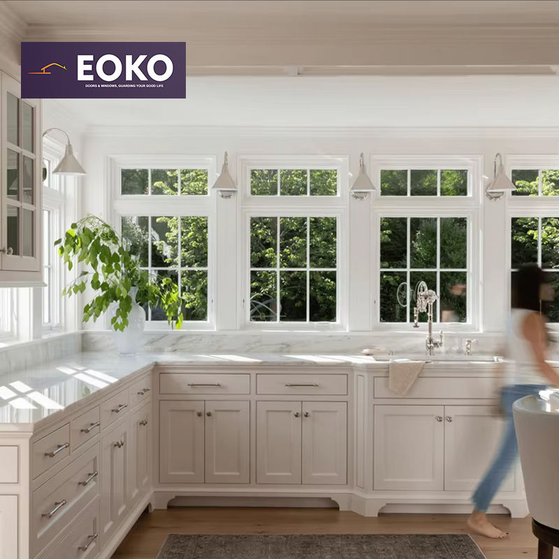 Eoko กระจกสามบานกระจกหน้าต่างไฟฟ้าอลูมิเนียมบานสวิงสำหรับวิลล่า