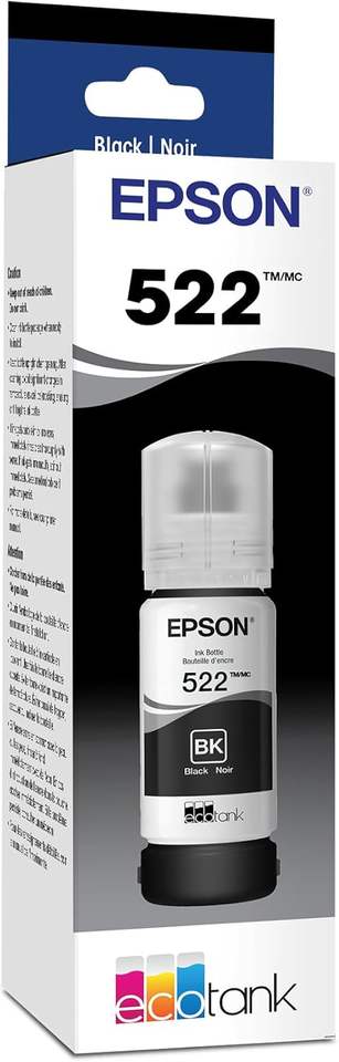 EPSON 522 EcoTank Ink ขวดหมึกความจุสูงพิเศษ สีดำ (T522120-S) ใช้ได้กับ EcoTank ET-2720, ET-2800, ET-2803, ET-2840