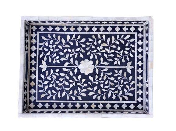 ถาดเสิร์ฟเครื่องดื่มแบบฝังทำมืออุปกรณ์ถาดตกแต่งอาหารผลไม้กาแฟชา