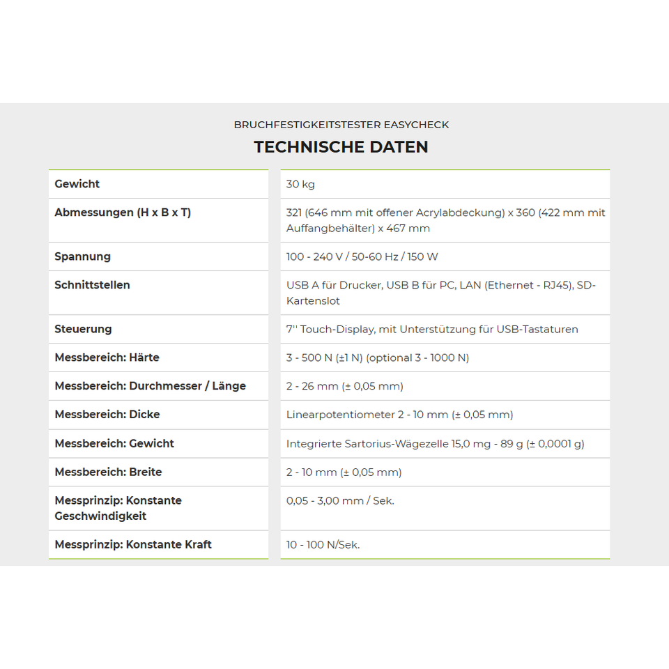 ERWEKA EasyCheck Breakage Strength Tester 5 Parameters USP/EP/JP Compliant 7\" Touch Display for Test Instrument