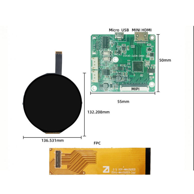ES050YMM-A00 BOE 5 นิ้ว 1080x1080 สีวงกลมความละเอียดสูงจอแสดงผล TFT LCD พร้อม H-DMI บอร์ดไดรเวอร์