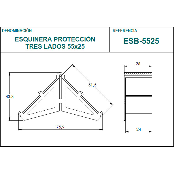 ESB-5525ปกป้องมุม3ด้าน55X25มม. รีไซเคิลได้ป้องกันขอบทำจากวัสดุ PP กันกระแทก