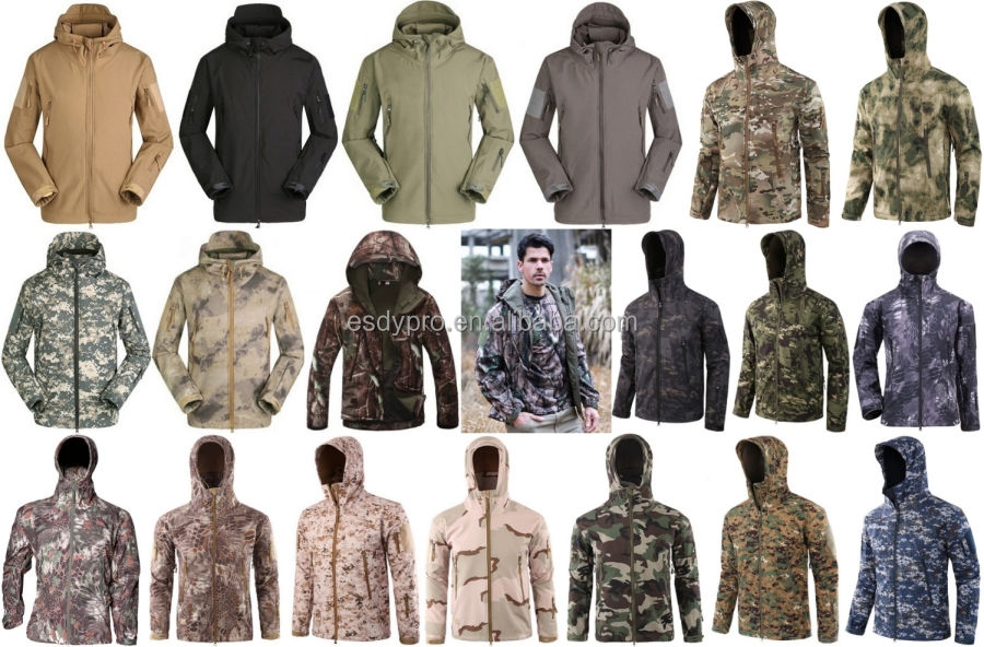 Esdy เสื้อแจ็กเก็ตกันน้ำมีฮู้ดสำหรับผู้ชาย, เสื้อแจ็คเก็ตแนวยุทธวิธีเสื้อโค้ทตัวนอกค่ายล่าสัตว์กลางแจ้ง