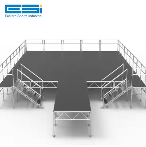 Esi เวทีเต้นรำอลูมิเนียมแบบพกพาที่มีพื้นผิวกันลื่นและแผงกันลื่นสำหรับงานเลี้ยงและการแสดง