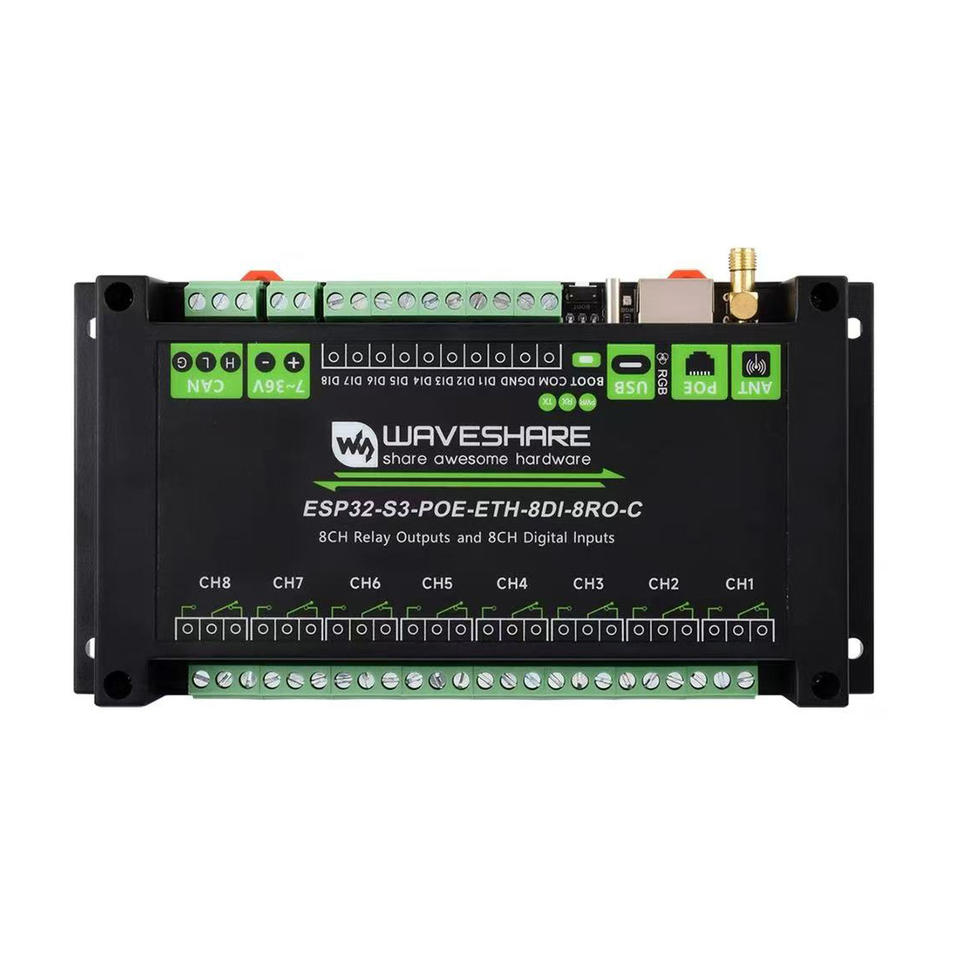 บอร์ดพัฒนา ESP32-S3ตัวส่งสัญญาณ WIFI 8ทางเกรดอุตสาหกรรม // CAN/POE พอร์ตเครือข่ายเสริม