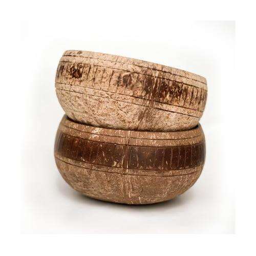 ESSENCE Bohemian Luxury Handmade Coconut Bowls Set Polished Salad Serving Dish with Hatches Zero Waste Packaged in Carton