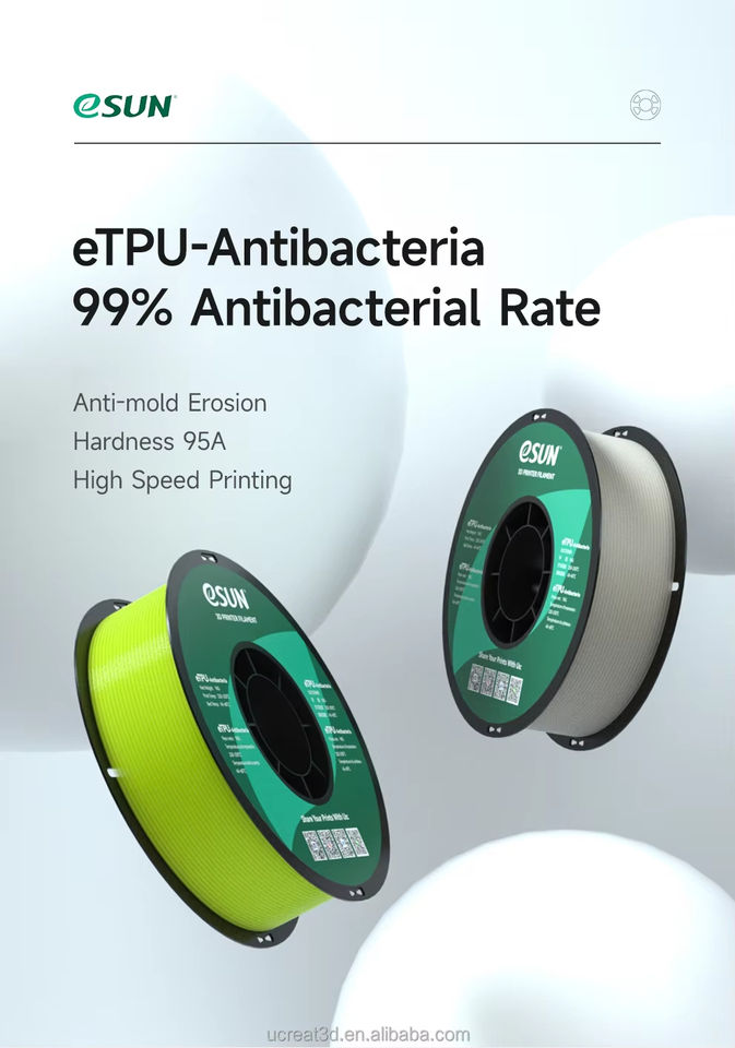 เส้นพลาสติกสำหรับเครื่องพิมพ์สามมิติ ESUN TPU HS ขนาด 1 กก. 1.75 มม. ป้องกันแบคทีเรีย วัสดุยืดหยุ่นสำหรับเครื่องพิมพ์สามมิติ