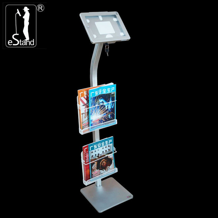 ขาตั้งแท็บเล็ตโลหะสำหรับพื้น พร้อมตะกร้าใส่แม็กกาซีนและแผ่นพับ