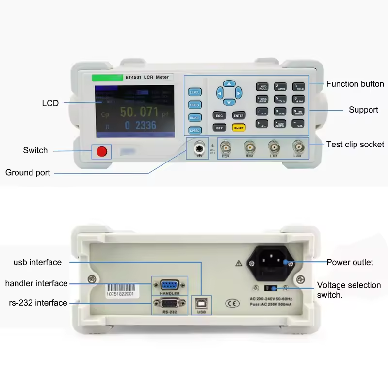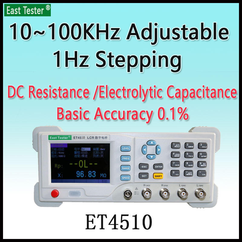 ET4510 เครื่องทดสอบแบบตั้งโต๊ะดิจิตอลบริดจ์ 100 กิโลเฮิร์ตซ์ 1 เฮิร์ตซ์ความถี่ที่ปรับได้อย่างต่อเนื่องมิเตอร์มืออาชีพความแม่นยำ 0.1%