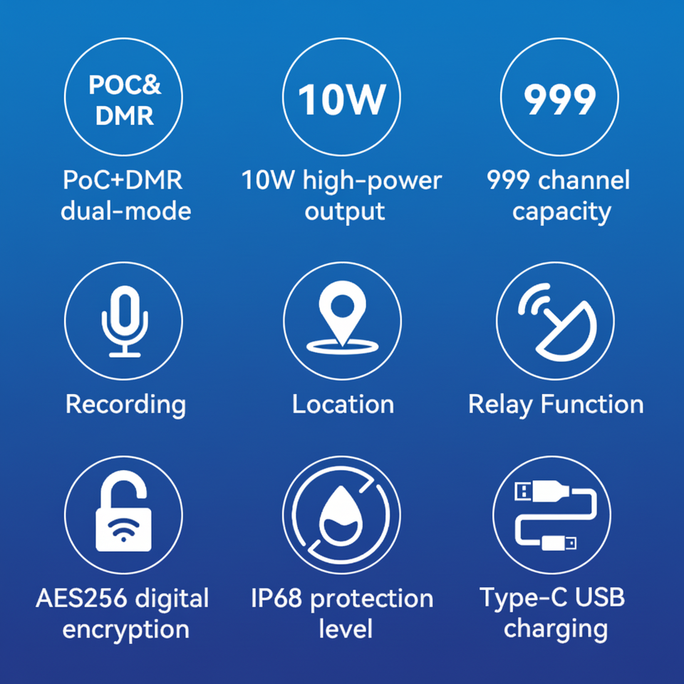 ETMY ET-C58 4G POC Walkie Talkie with GPS/WiFi >50km Range IP67 Waterproof 2200mAh Battery VHF/UHF for Security Applications