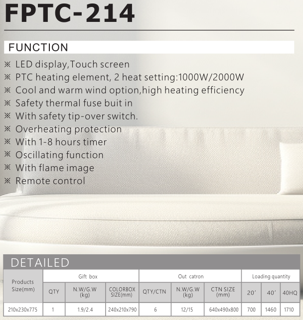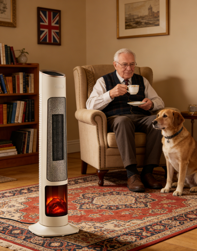 เครื่องทำความร้อนแบบทาวเวอร์ PTC ได้รับการรับรองมาตรฐาน CE ของสหภาพยุโรป แรงดันไฟฟ้า 220-240V พร้อมเอฟเฟกต์เปลวไฟ รีโมทคอนโทรล และระบบส่ายได้ เหมาะสำหรับห้องนั่งเล่นและสำนักงาน