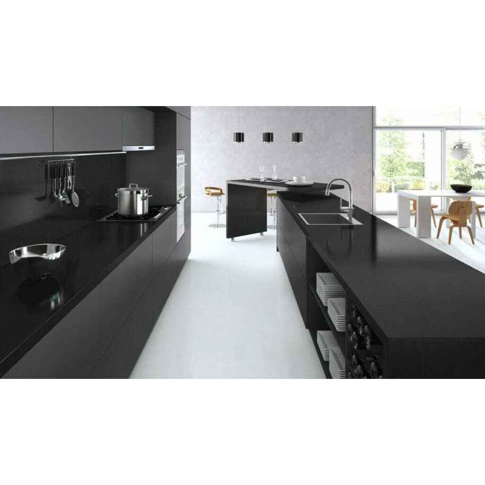 เคาน์เตอร์ท็อปสีดำเจ็ทสไตล์โมเดิร์นจาก EU ผิวด้าน ทนต่อคราบสกปรก ผลิตจากวัสดุ Solid Surface หนา 15-30 มม. แผ่นใหญ่