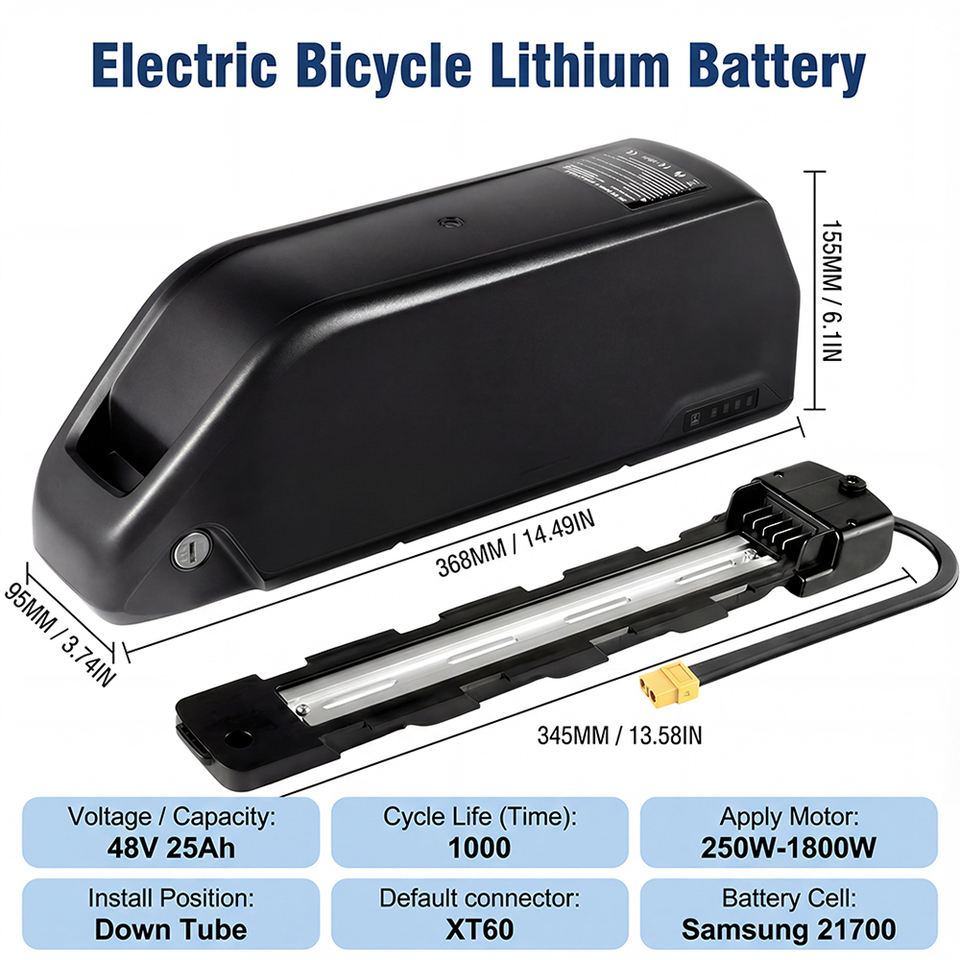 แบตเตอรี่ลิเธียมไอออน 48V 25Ah ของ EU สำหรับจักรยานเสือภูเขาไฟฟ้า จักรยานไฟฟ้าในเมือง สกู๊ตเตอร์บรรทุก รถสามล้อไฟฟ้า พร้อมกล่องใส่แบตเตอรี่ ชุดอุปกรณ์ กระเป๋า กล่อง