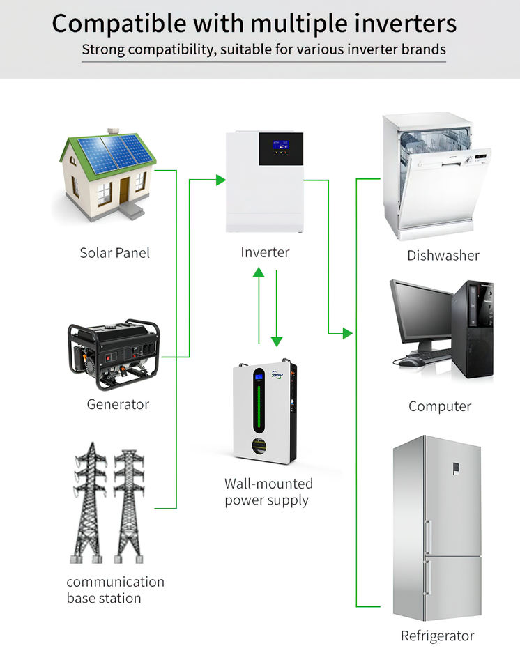 แบตเตอรี่200Ah เพาเวอร์วอลล์100Ah Lifepo4ลิเธียม5Kwh แบตเตอรี่ลิเธียมแบบไฮบริดติดผนังขนาด51.2V