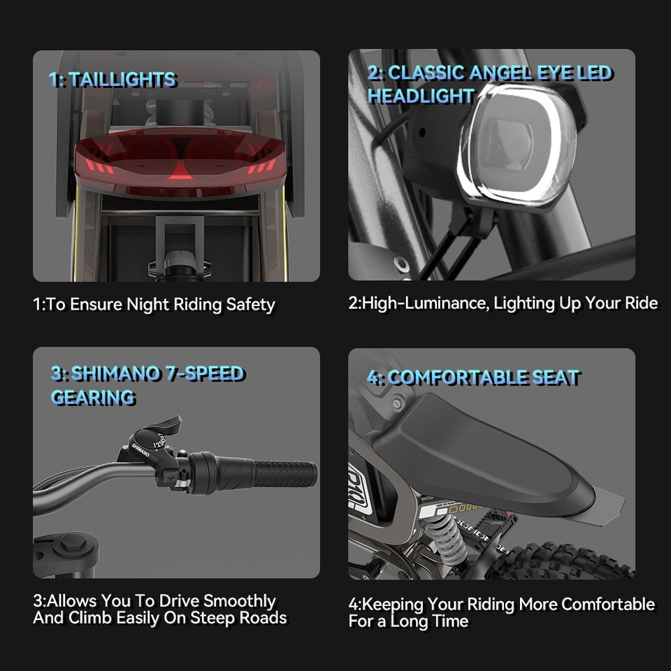 ระยะทางสูงสุด:ระยะทางวิ่งด้วยไฟฟ้าล้วน 80-100 กม., ระยะทางวิ่งช่วยปั่น 120-150 กม.