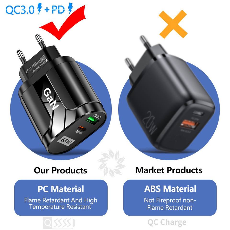 EU US สหราชอาณาจักรปลั๊กทนไฟ PC QC3.0 GAN ที่ชาร์จ65W มินิ USB C 33W เร็วสำหรับรถยนต์เดสก์ท็อปสมาร์ทชาร์จ65W ขายส่ง