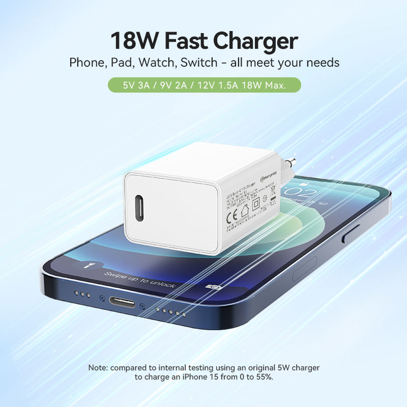 อะแดปเตอร์ชาร์จ EU USB-C 18W PD รองรับ 5V 3A 9V 2A 12V 1.5A หลายหัวชาร์จสำหรับสมาร์ทโฟน