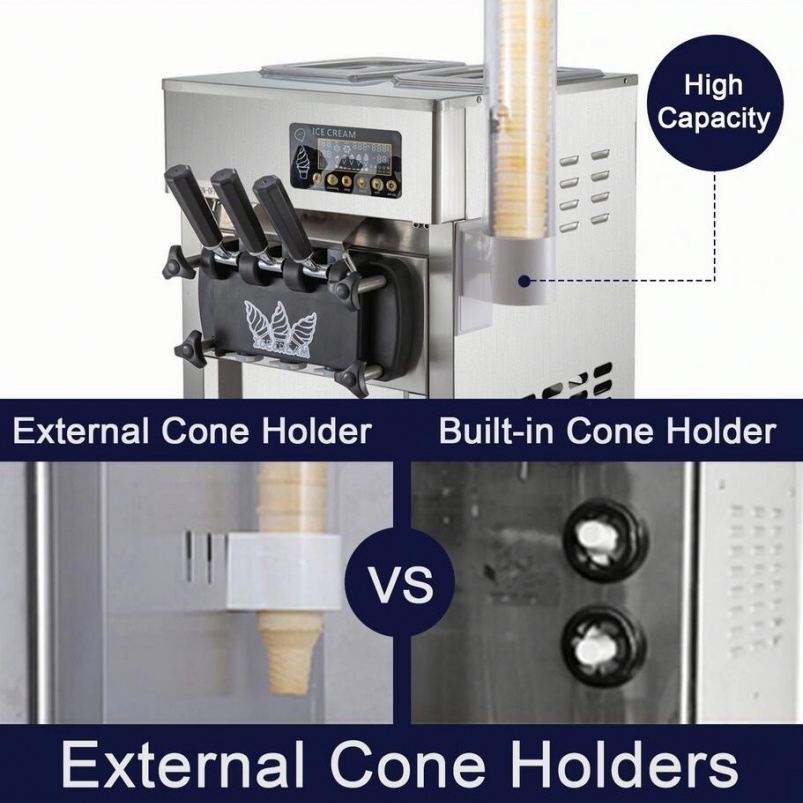 เครื่องทำไอศกรีมชนิดนิ่ม2 + 1รสชาติเครื่องทำไอศกรีมสแตนเลสทองแดง18L