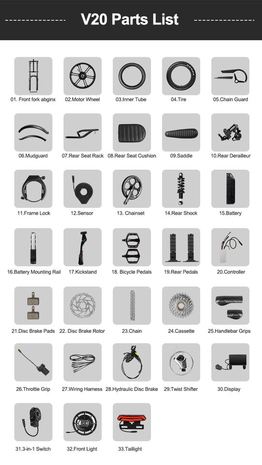 อะไหล่จักรยานไฟฟ้า EU Warehouse จัดส่งเร็ว V20 Pro ยางใหญ่ อุปกรณ์ควบคุมจักรยานไฟฟ้า อะไหล่ทดแทนจักรยานไฟฟ้า ชิ้นส่วนจักรยานไฟฟ้า