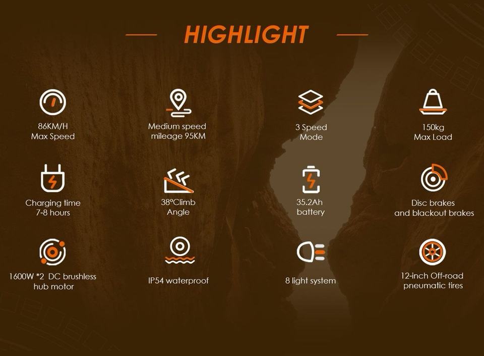 Kukirin มอเตอร์ขับเคลื่อนคู่3200W ออฟโรด G4เบรกไฮดรอลิกด้านหน้าหลังระยะทาง95กม. จากคลังสินค้า EU ขนาด12นิ้ว60โวลต์35.2แอมป์