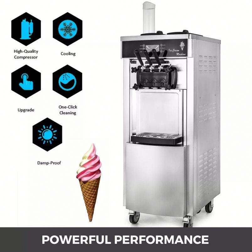 คลังสินค้า EU สำหรับข้อเสนอพิเศษใหม่ เครื่องทำไอศกรีมนุ่มขนาดเล็ก 2+1 รสชาติ ผงไอศกรีมนม อายุการใช้งานยาวนาน 110/220V