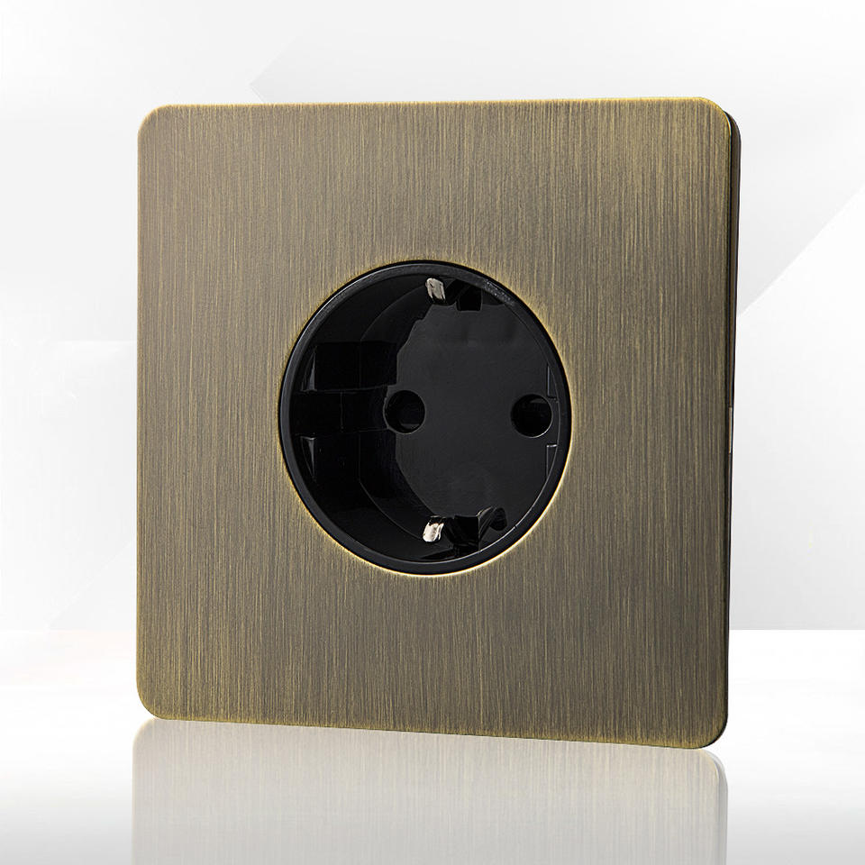 สวิตช์ติดผนังแผงสแตนเลสสตีลหรูหราเต้ารับสหภาพยุโรปสวิตช์ไฟฟ้าที่บ้าน