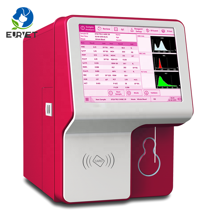 EUR Vet เครื่องตรวจเลือดสำหรับสัตวแพทย์เครื่องตรวจสัตว์แพทย์ความเร็วสูง5ส่วนเครื่องวิเคราะห์เลือดของสัตวแพทย์แบบอัตโนมัติ