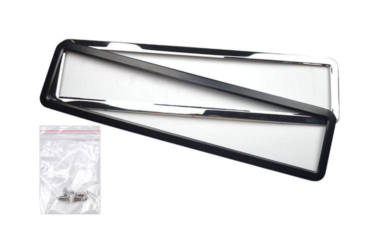 ยูโรเปล่าสีดําพลาสติกป้ายทะเบียนกรอบสแตนเลสด้านนูนฝาครอบป้ายทะเบียน