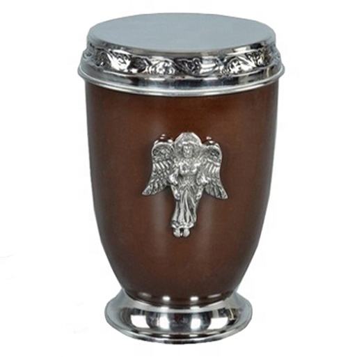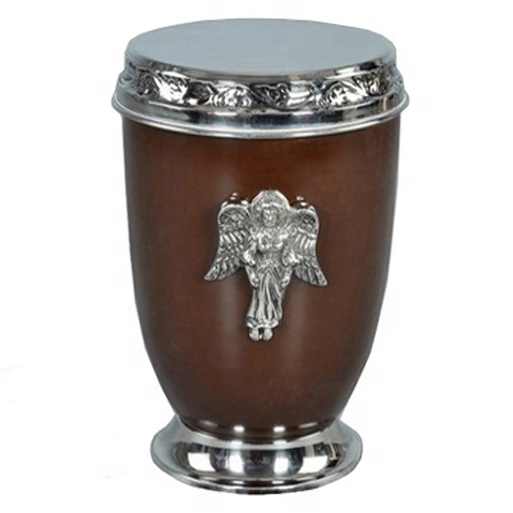 Funeral European Large Urn:Brown Mat & Silver Polish
