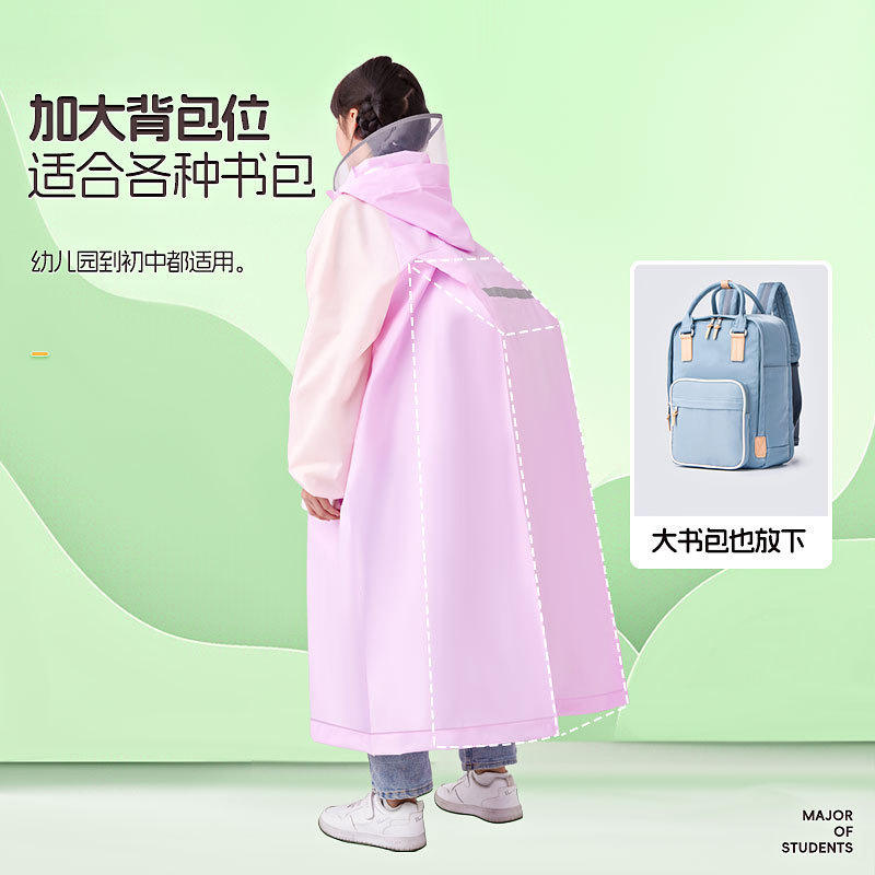 เสื้อกันฝนเด็ก EVA แบบหนาพิเศษ พร้อมช่องใส่กระเป๋าเป้สะพายหลัง แถบสะท้อนแสงทั้งตัวสำหรับนักเรียน ผ้าคลุมกันฝนแบบชิ้นเดียว