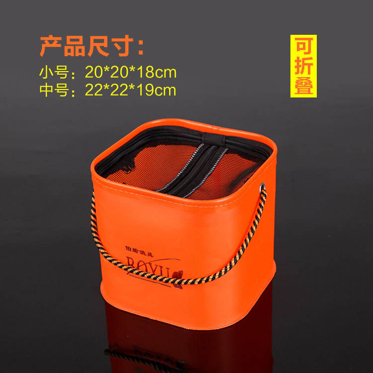 ถังตกปลาแบบพับได้ EVA ทรงสี่เหลี่ยมพร้อมเชือกยาวสำหรับเก็บน้ำ มีขนาดเล็ก กลาง ใหญ่ให้เลือก