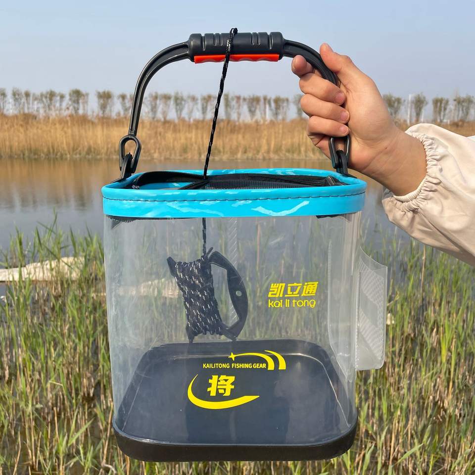 ถังตกปลาแบบพับได้ EVA กันน้ำ กล่องอุปกรณ์อเนกประสงค์พร้อมหูหิ้วด้านบน สีส้ม สีดำ สีฟ้า สีน้ำเงินเข้ม
