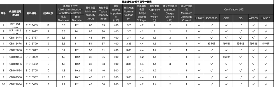 ขนาดสูงสุดของเซลล์แบตเตอรี่ (มม.):ความหนา5.6 Diameter11.1
