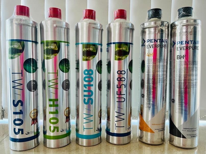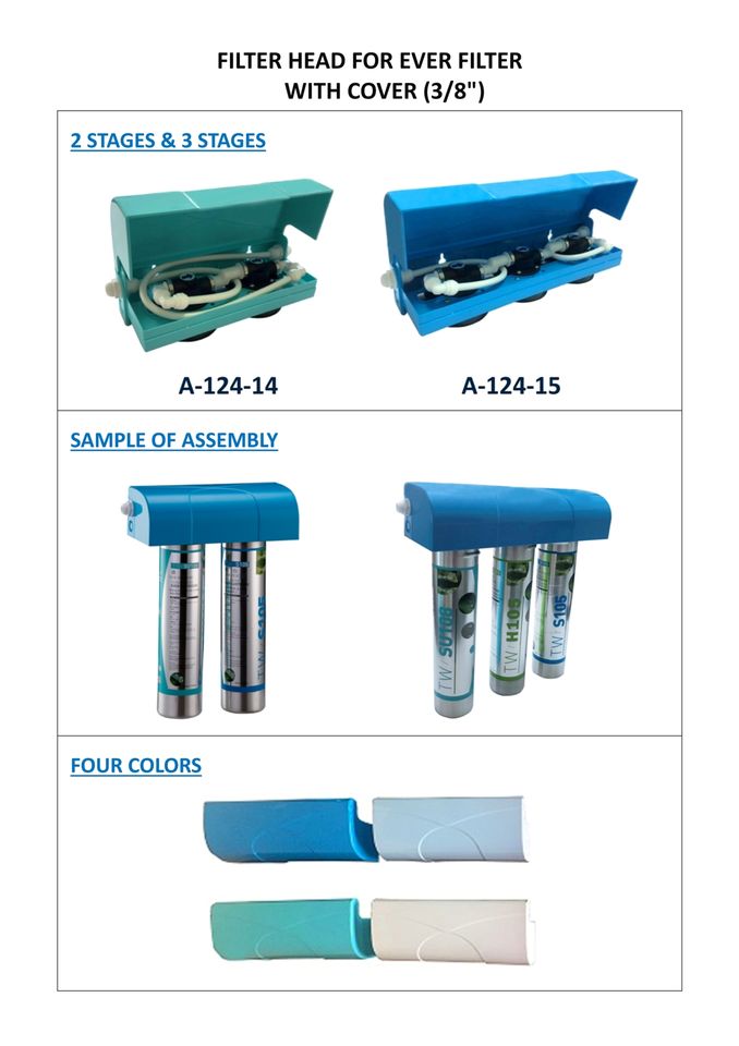 หัวกรองคู่สีฟ้าอ่อนและฝาครอบ ช่องต่อ 3/8 นิ้ว (เข้ากันได้กับ Everpure) (ผลิตในไต้หวัน)
