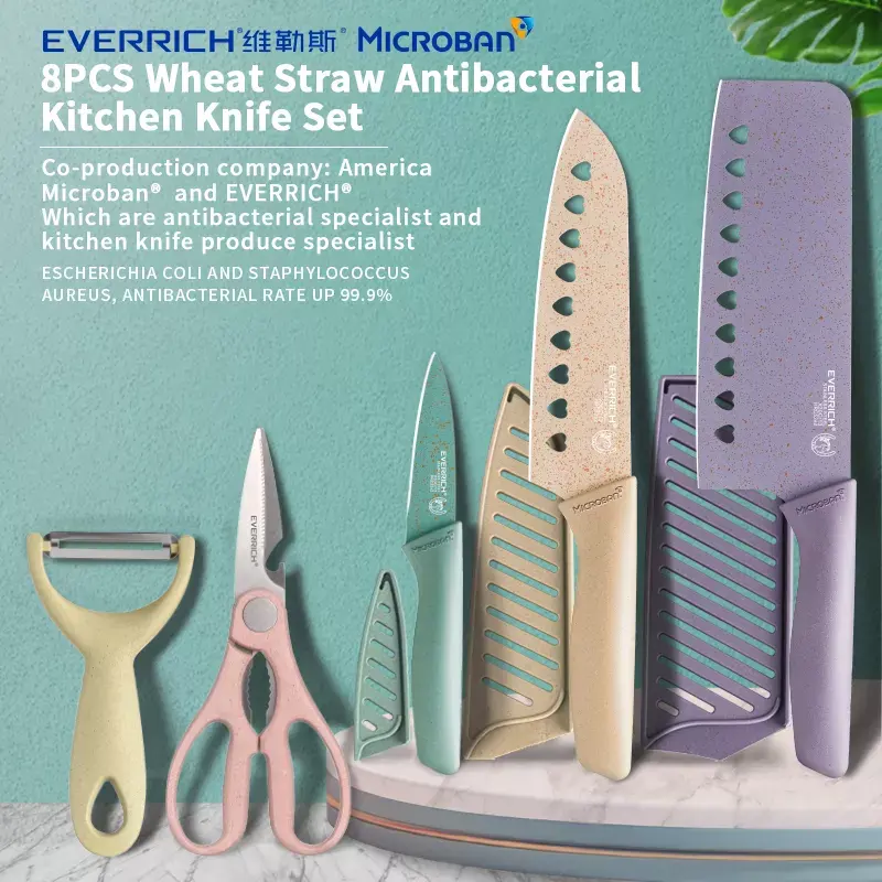 EVERRICH ชุดมีดหลากสี5ชิ้น,ชุดมีดทำครัวฟางข้าวสาลีคุณภาพสูง2020กล่องของขวัญมีดเชฟ