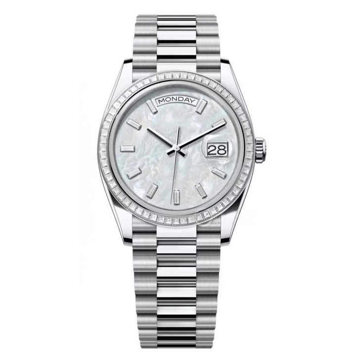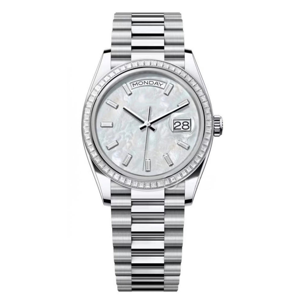 นาฬิกาคู่รัก EW FC Sk 904L รุ่น 36 มม. สำหรับผู้หญิง ระบบออโตเมติก ประดับเพชรทรงลูกบาศก์ สีเงิน กลไก 2834/7500 นาฬิกาข้อมือลำลอง