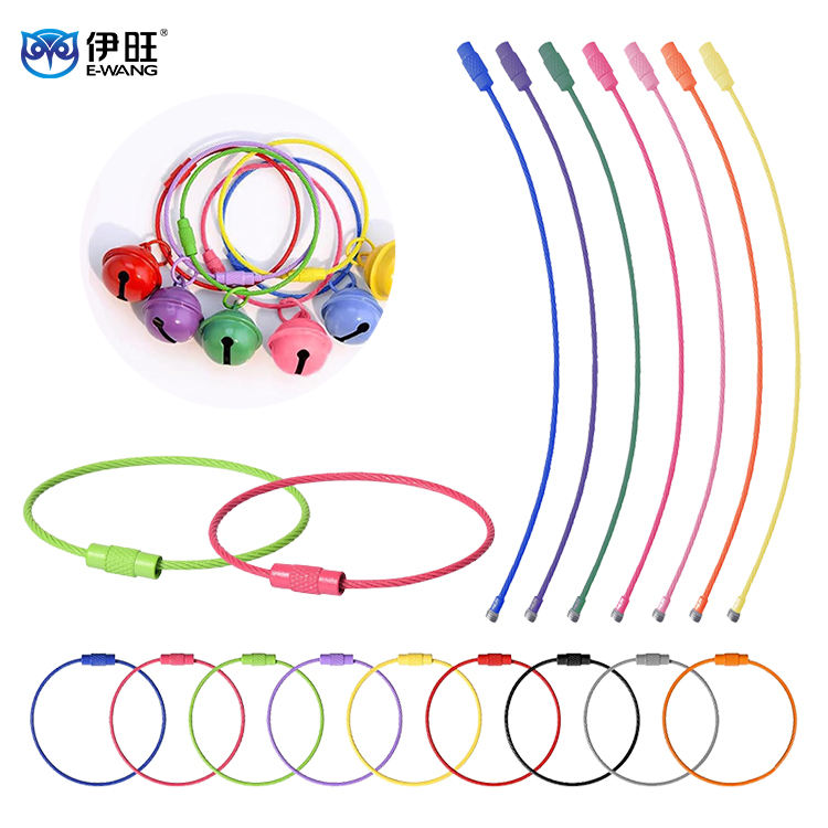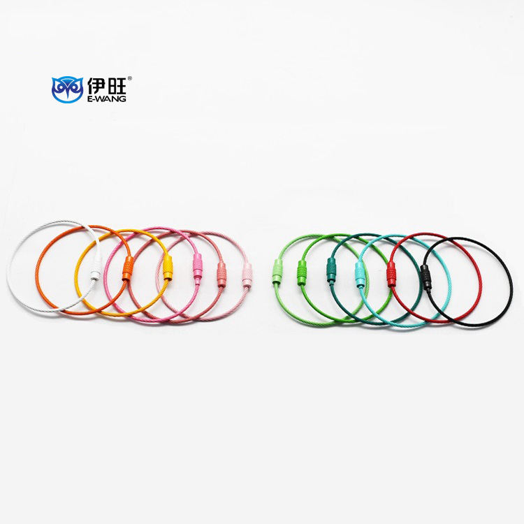EWANG Colorful Coated Stainless Steel Wire Rope Keychain Aircraft Cable Key Ring Loops
