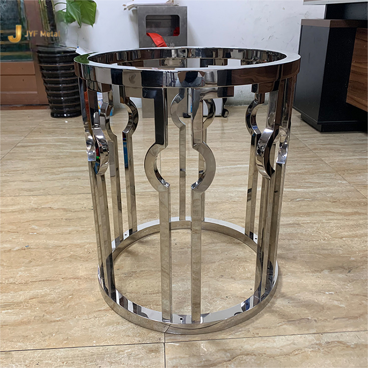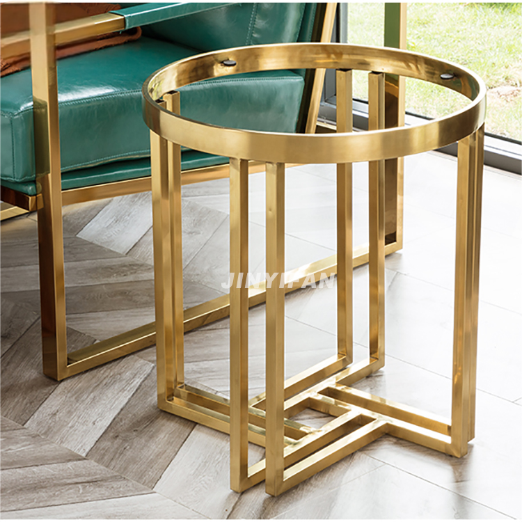 EX209โต๊ะทานอาหารโลหะมีกระจกสแตนเลสสตีลรูปทรงที่ไม่ได้มาตรฐานไม่เหมือนใครใช้กลางแจ้ง
