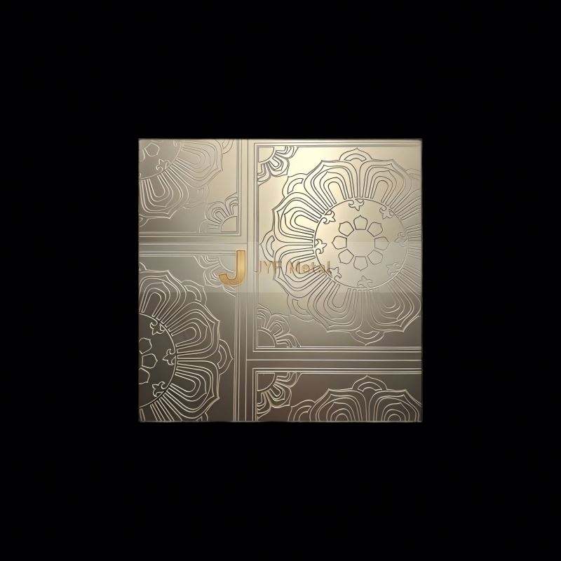 แผ่นเหล็กสแตนเลส 304 ลายทองเหลืองโบราณ รุ่น EX225 ดีไซน์ลายฉลุทองแดง ตัดแต่งสีทอง แผ่นปิดผนังแบบยก