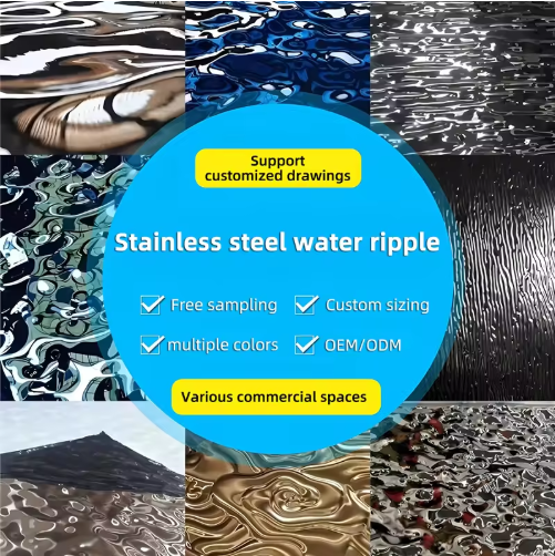 แผ่นฝ้าเพดานลายคลื่นน้ำ 3 มิติ รุ่น EX683 สแตนเลส 8K ลายคลื่นน้ำแบบนูน สีดำไทเทเนียม