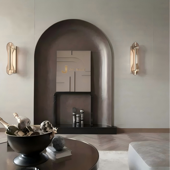 EX984 Custom Made Stainless Steel Fireplace Frame Art Deco Design Floor Mount Installation for Outdoor Architectural Interior