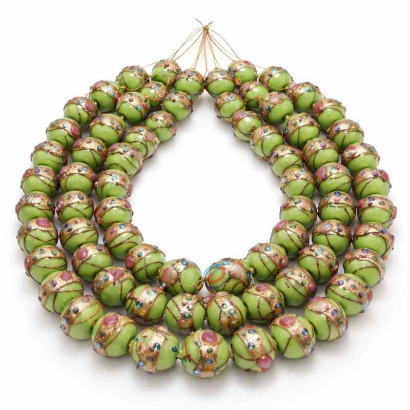 ลูกปัดแก้วหลอมสีเขียวมะนาวขนาด 12 มม. จาก EXCEL EXPORTS | นักออกแบบเค้กแต่งงาน งานฝีมือทำมือ ลูกปัดทรงกลม | ขาตั้งขนาด 8 นิ้ว